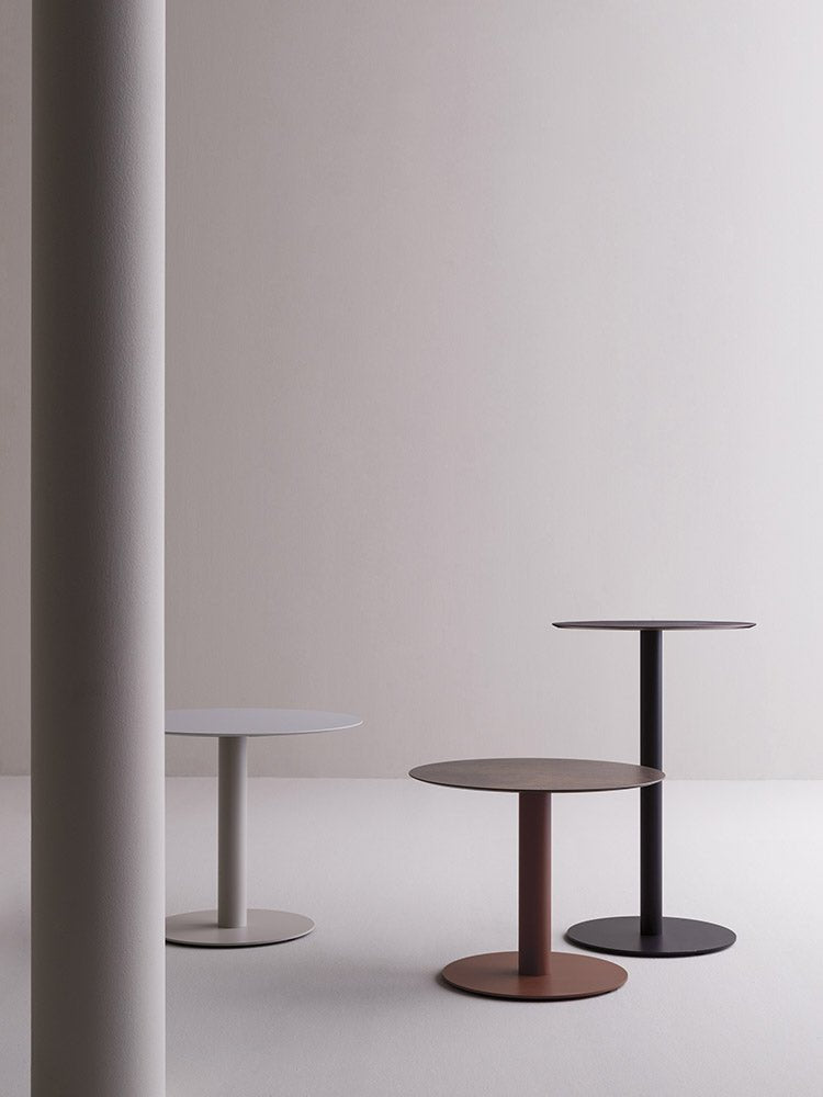Available with tops in different sizes ( dia 27.55" - 39.37" or 27.55" x 27.55" ) and materials ( HPL, marble and ceramic )