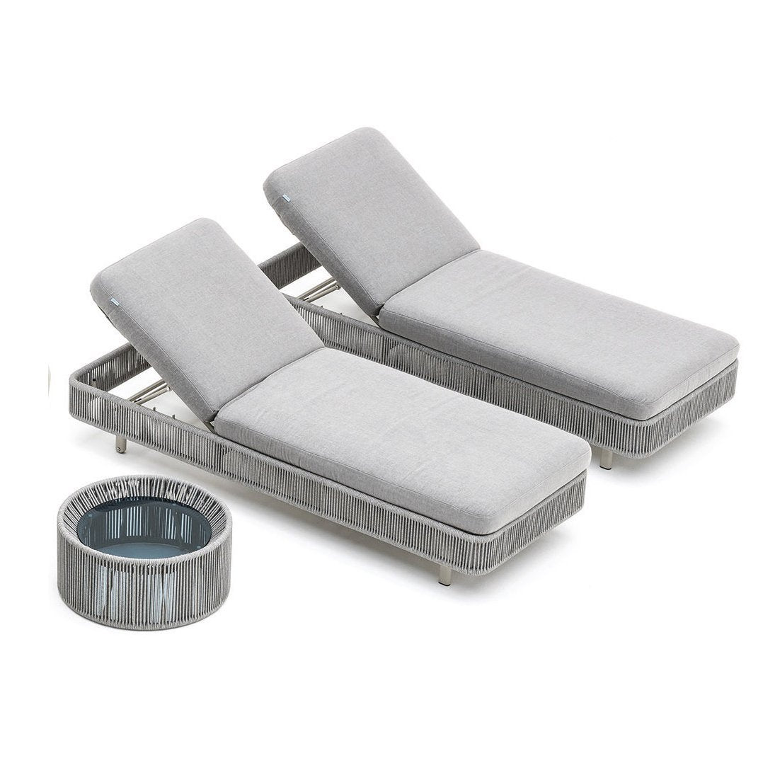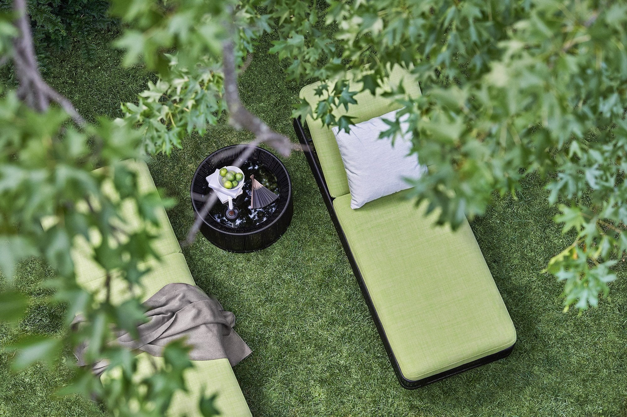 Materials: powder-coated aluminum frame with hand-woven man-made fibre. Polyurethane foam cushion.